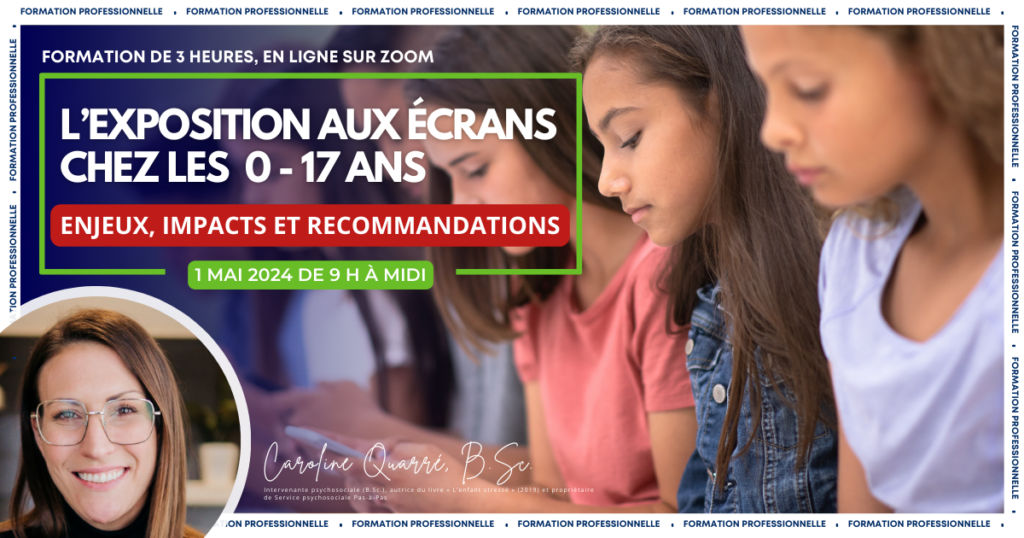 Formation destinée aux professionnel-les de la SSS (médecins de famille, infirmières, IPSS, TS) L’exposition aux écrans chez les 0-17 ans : enjeux, impacts et recommandations.