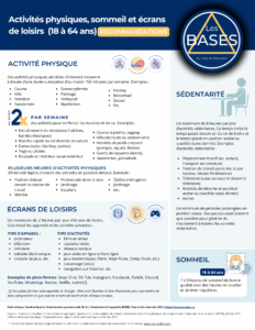 Activités physiques, sommeil et écrans de loisirs (18 à 64 ans)