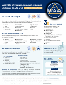 Activités physiques, sommeil et écrans de loisirs (5 à 17 ans)